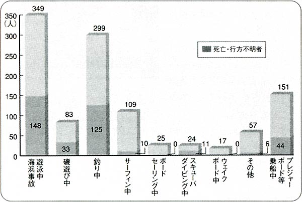 海上保安庁では、マリンレジャーに伴う死亡・行方不明者について