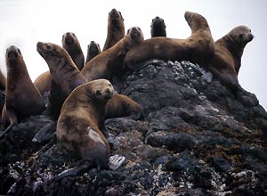 世界的にも減少が懸念されている動物のひとつです。現在は択捉島南端のシカラガラシ岬と歯舞群島のカナクソ岩に、若い群れの上陸場がありますが、戦前はもっと多くの上陸場があったと言われています。シカラガラシ岬では100〜200頭前後を数え、一部は繁殖している可能性もあります。