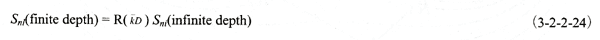 式(3-2-2-25)は、深海波を対象とした非線型相互作用の近似式であるが、浅海域では深海域に比べて非線型相互作用の影響は大きくなる。WAMでは、水深の影響を考慮した浅海波の計算を行う場合には、字式で表されるように、浅海波のための補正の尺度係数  を乗ずることによって浅海域の非線型相互作用を考慮している(WAMDI Group, 1988)。
