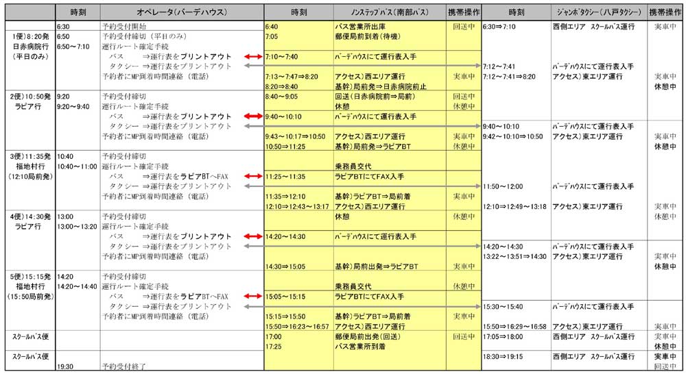 表 1日の流れ【車両運転者向け:ジャンボタクシー用】
