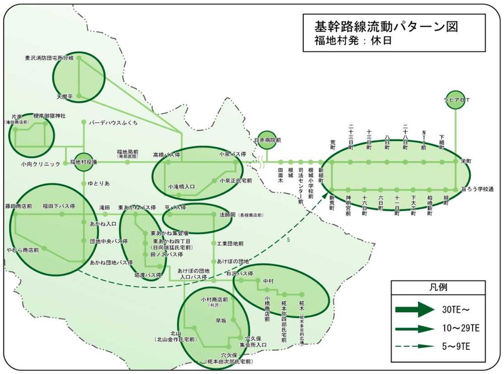 村内のあかね団地や中村、椛木の集落から日赤病院への利用者が多い。また、あかね団地、早坂、穴久保から八戸中心部への利用者も多い。