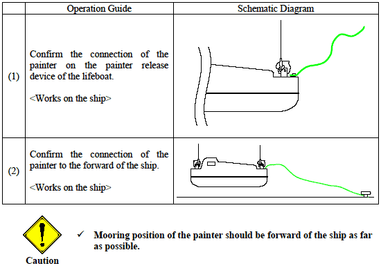 Go up to the stage of the davit system (stage for boarding to the lifeboat).