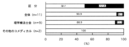 全体では、87%が実習を望ましいとしており、特に理学療法士会では100%が望ましいとしている。