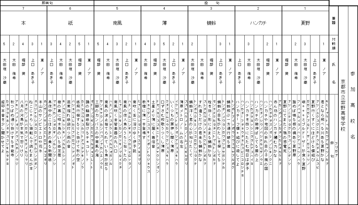 参加チーム別投句一覧