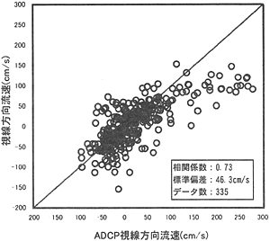 図2.2.4.5 ADCPと短波レーダーの視線方向流速の相関