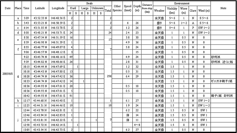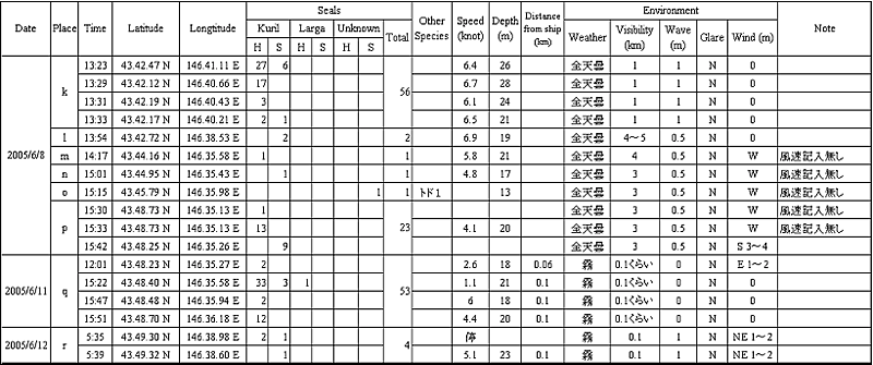 表2. 色丹島各調査地点の概要