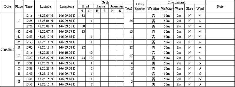 表5. 色丹島およびハルカリモシリ島におけるAdult/Pup確認個体数