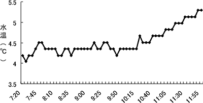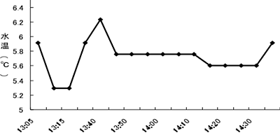 図4. ハルカリモシリ島大島地点Pにおける水温(6月10日)