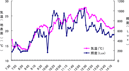 ハルカリモシリ島大島地点Aにおける気温および照度