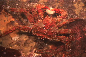 ハナサキガニを数個体観察することができた。そのうち一個体は、エゾバフンウニをはさみではさんでいた(写真15)。捕食するまでの観察にはいたらなかったが、その可能性は期待できうると考える。
