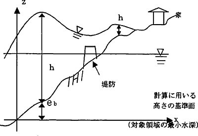 ここでは,数値解析を用いて氾濫状況や氾濫水の流体力分布を調べ,氾濫災害のメカニズムを明らかにするとともに,現在,松合地区高潮対策検討委員会(委員長:滝川清)で検討されている対策工法(堤内地の地盤嵩上・国道前面の防波堤形状の変更)の有効性を危険度評価という観点から検討した.なお,危険度評価の指標としては多種多様なものが考えられるが,本研究では,
