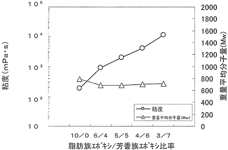 脂肪族エポキシと芳香族エポキシの粘度、分子量との関係