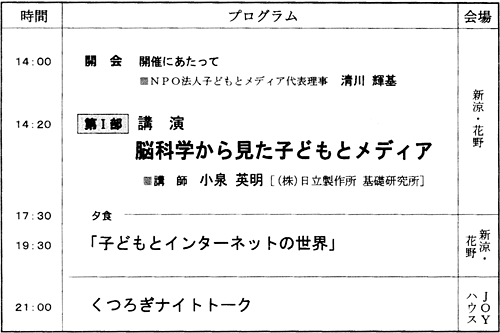 「脳科学と教育」の基本問題の一つは、脳から見た人間同士のコミュニケーションである。「人間」という文字が示すように、人の間、すなわち人と人との良い関係があって初めて、個人としての「人」が、「人間」として生きて行けるからだ。このコミュニケーション能力は脳の働きの一部でもあり、幼少の時期に神経基盤が作られる。「子どもとメディア」の問題もそこに出発点がある。