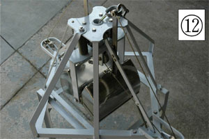 (13)作動板に触れるとフック、つめが外れる恐れがあり大変危険である。フレーム板に鎖で吊られている安全ピンを差し込んでおき、海中に降ろす直前に安全ピンを抜くよう心がける。