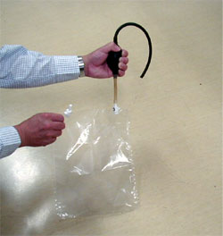 ゴム球と採気袋を装着した後、ゴム球を繰り返し握る。