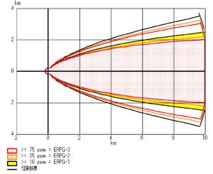 流出量:1000(KL) 風速:5(m/s) 気温:20(℃)