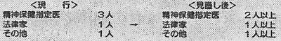 現在、各都道府県に必置を義務付けている地方精神保健福祉審議会について、その設置を都道府県の裁量に委ねるとともに、指定病院の取消しの際の意見聴取機関について、同審議会が置かれない場合には医療法に規定する都道府県医療審議会が担当するものとする等の改正を行う。(18年4月1日から)
