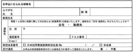 *記入頂きました個人情報の取り扱いに関しては該当研修の通知案内・講師への開示(一部分)以外での使用はいたしません。)